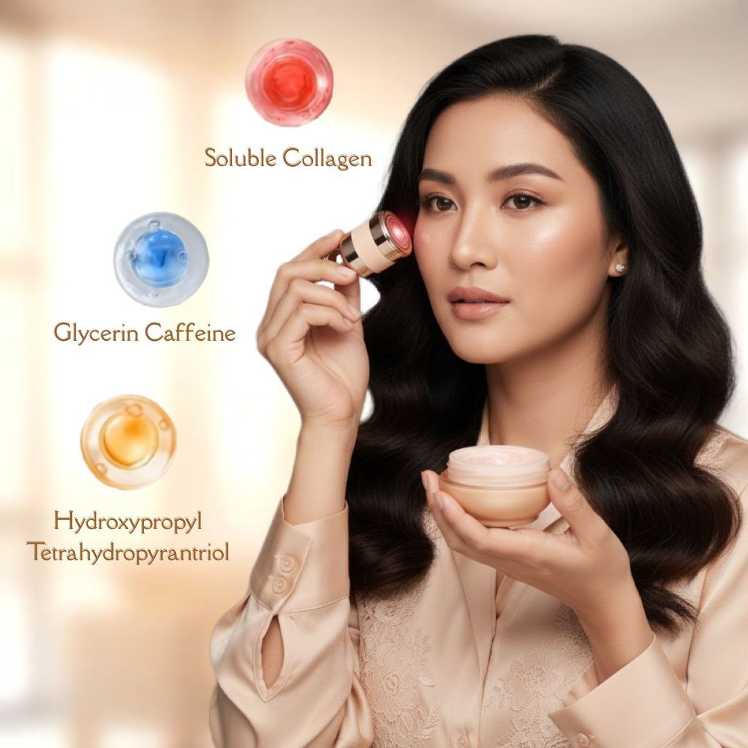 With key ingredients like Collagen, Glycerin, and Caffeine, it reduces dark circles, puffiness, and fine lines.